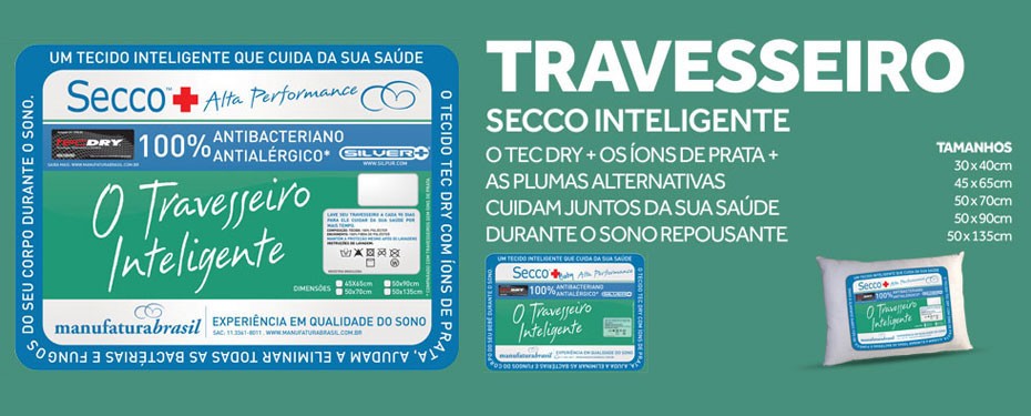 Clique no botão abaixo para adicioná-lo TRAVESSEIRO SECCO INTELIGENTE 100%ANTIBACTERICIDAS IONS DE PRATA para sua lista de favoritos.